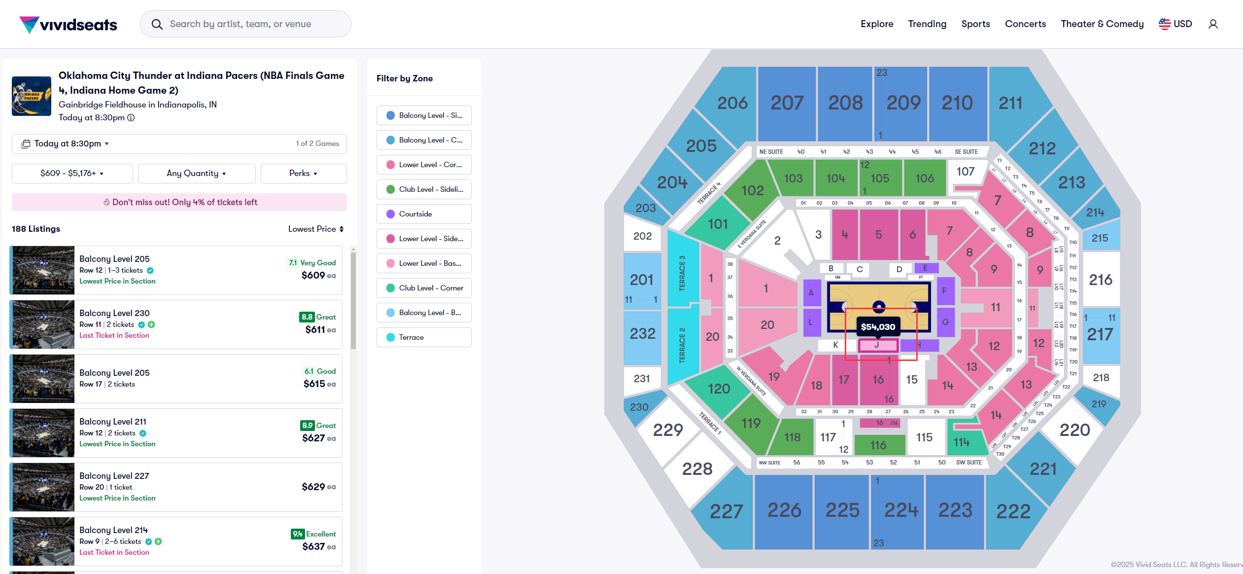 这场比赛步行者最贵的一个VIP包厢一张票高达5.4万美元,G3这个包厢的票价为2.9万美元,这个涨幅是不是相当恐怖?虽然今年总决赛的收视率暴跌,可印第安纳波利斯赚的盆满钵满,步行者球迷们都期盼NBA队史第一个总冠军。