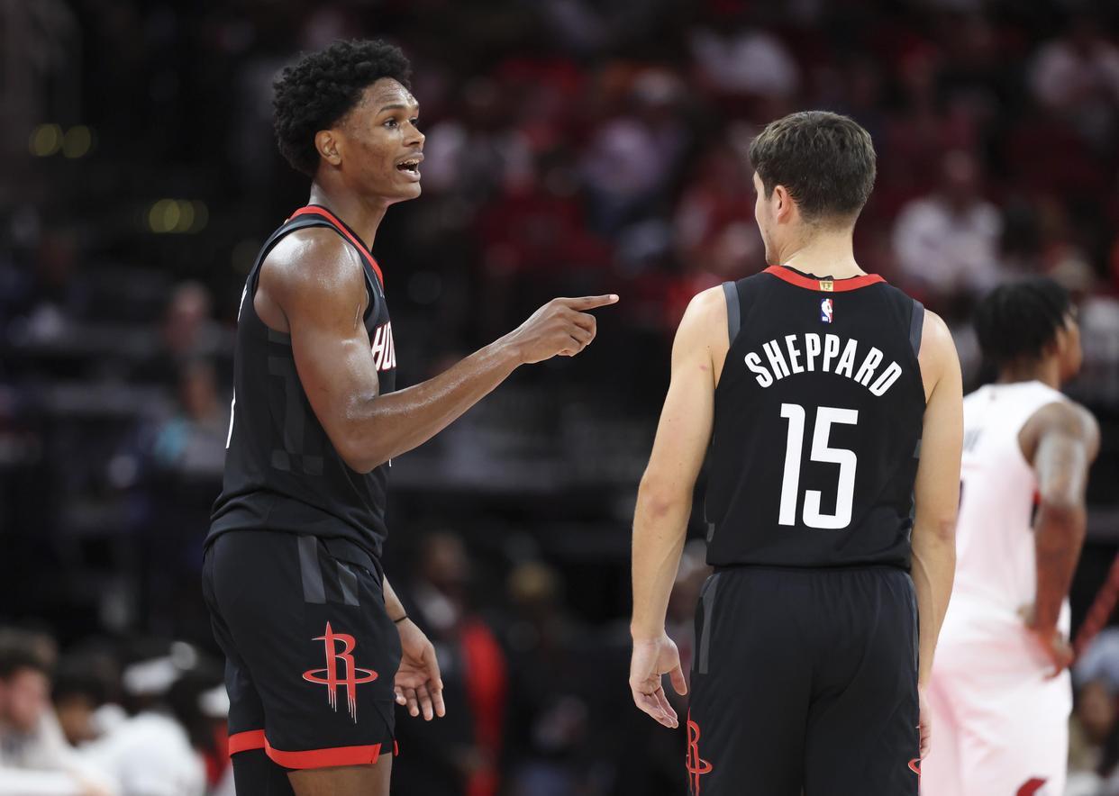 谢泼德在场上完全能够激活火箭队的其他队友,并且为火箭队的两位核心杜兰特以及申京拉开空间,这是阿门汤普森所做不到的。阿门汤普森更像是一位前锋,在内线横冲直撞,无人能挡,但是让他去梳理进攻,玩这种细腻的技术活,似乎阿门汤普森远不如谢泼德。